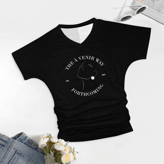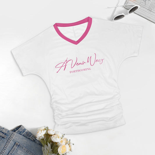 Basic V-neck pleated T-shirt
